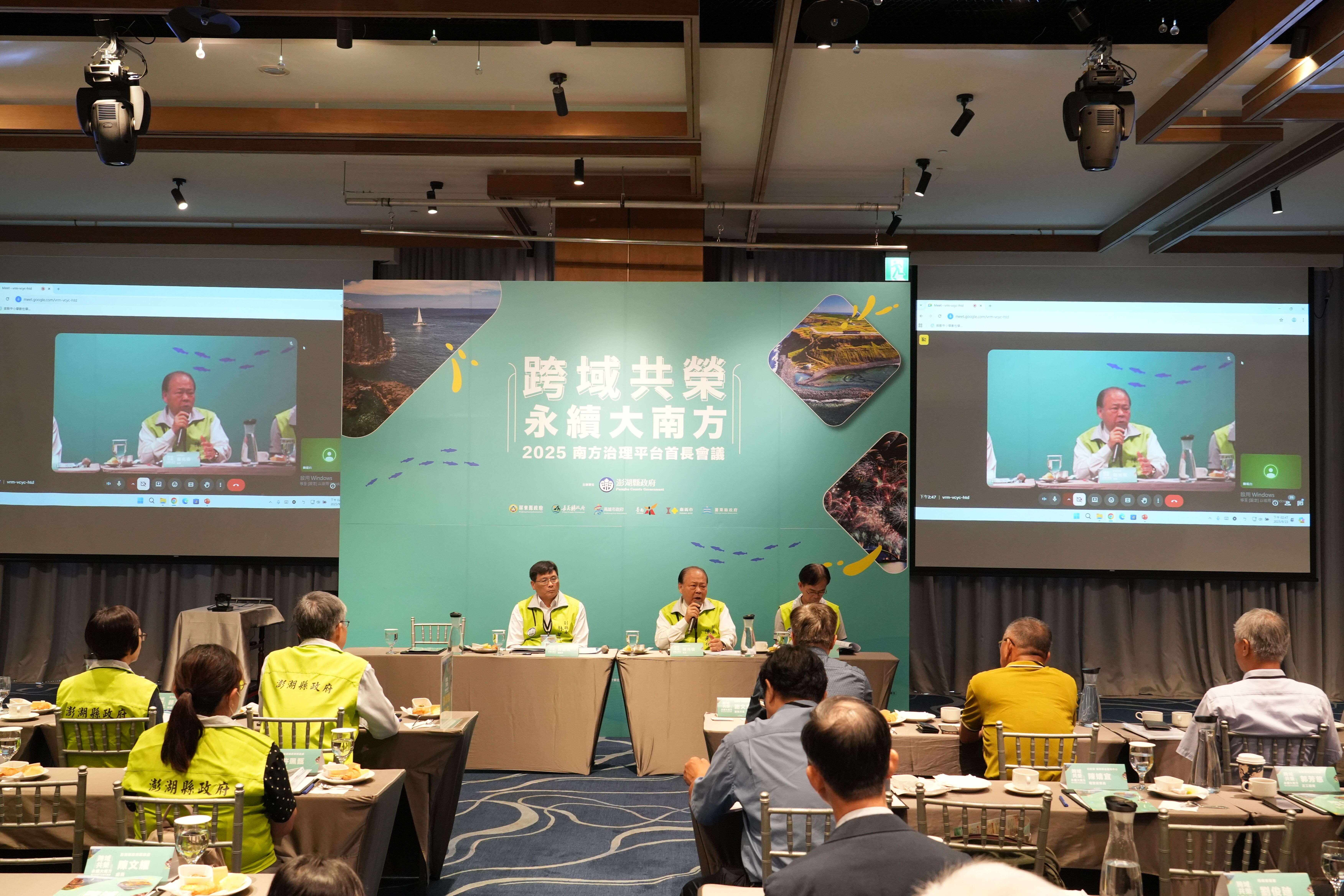114年「2025南方治理平台首長會議」於114年9月23、24日舉行,由澎湖縣政府主辦,因強颱「樺加沙」影響,本市與臺南市、屏東縣、嘉義縣、嘉義市以視訊方式與會。本次會議提案涵蓋「環境永續-廢棄物處理」、「綠色旅遊」、「其他」等議題計4案,攜手中央強化平台縣市夥伴合作與經驗交流,共同為民眾打造永續生活環境及推動旅宿業者碳標籤認證。